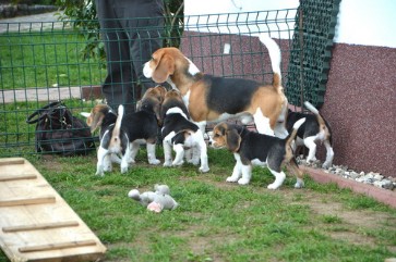 Jimmy mit seinem Nachwuchs Beagle Welpen vom Glasbachtal L-Wurf 2012
